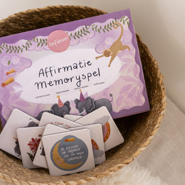 Kom gezellig meespelen! Met het nieuwe memoryspel van Liefdevolle Affirmaties wordt plezier gecombineerd met blije gedachten en extra zelfvertrouwen.